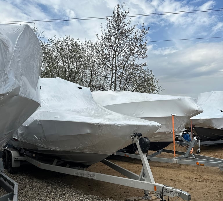 Your boat is wrapped in marine-grade shrink wrap, vented and supported to handle Ontario winters. We protect it against snow, ice, and rodents with a clean, tight finish.